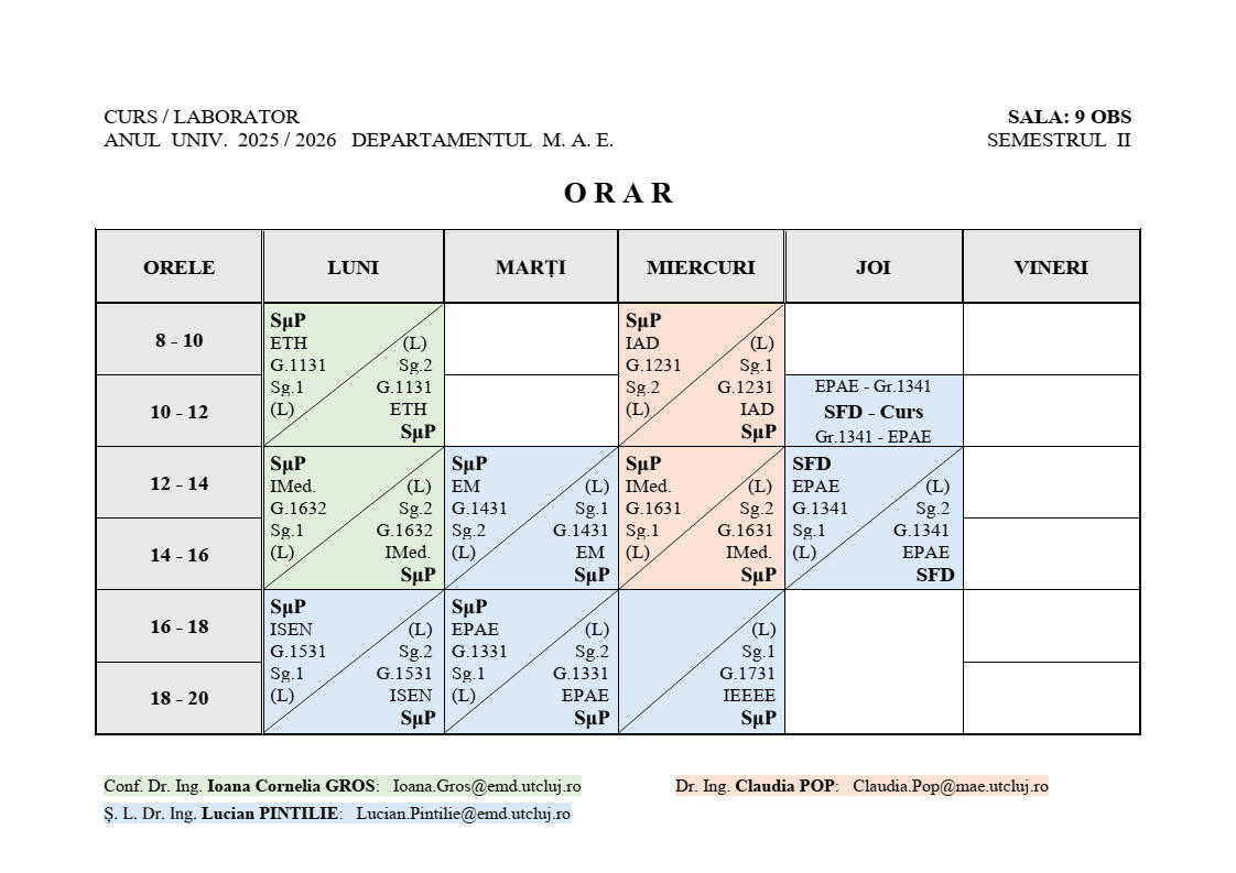 Conf. Dr. Ing. Ioana Gros: Ioana.Gros@emd.utcluj.ro